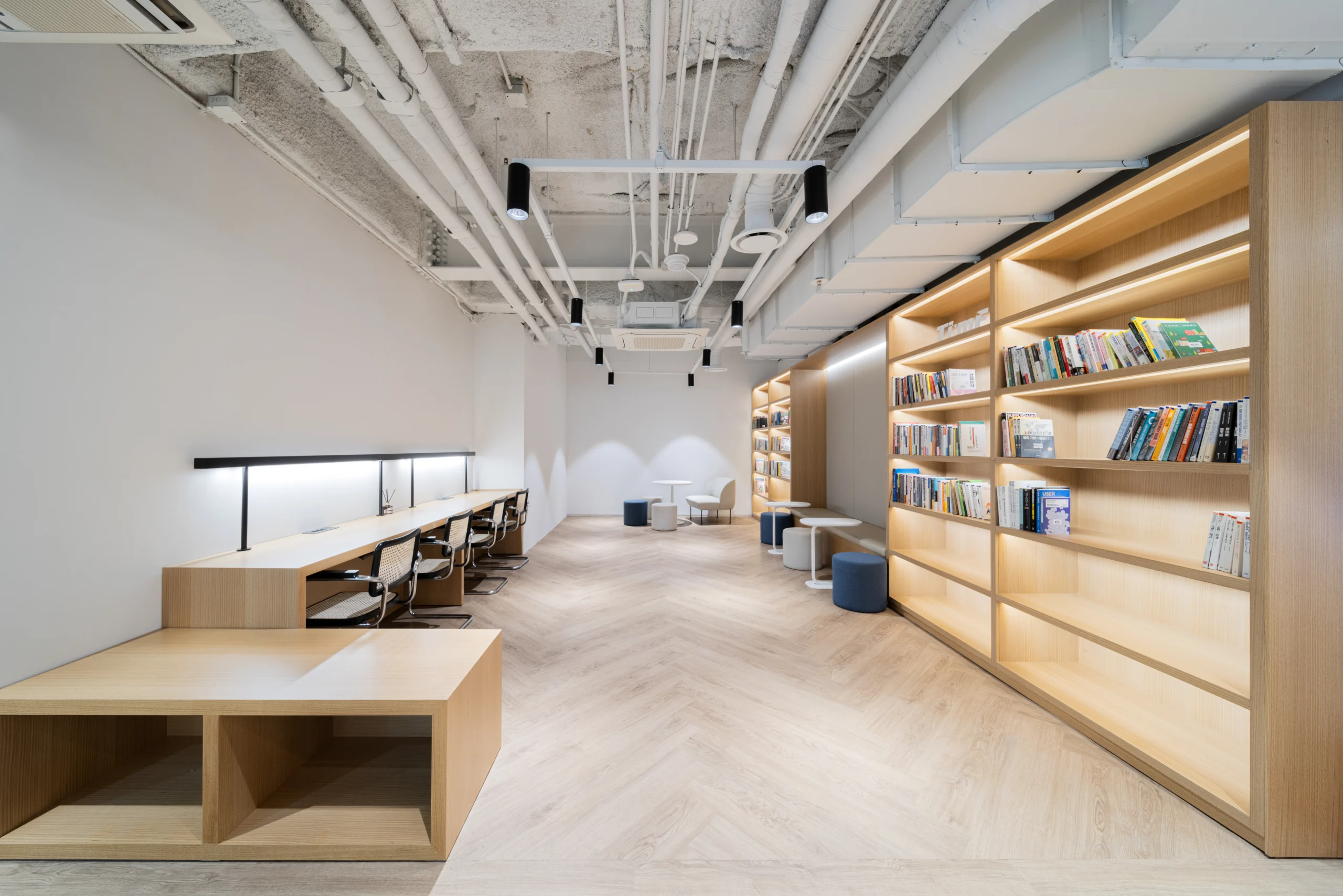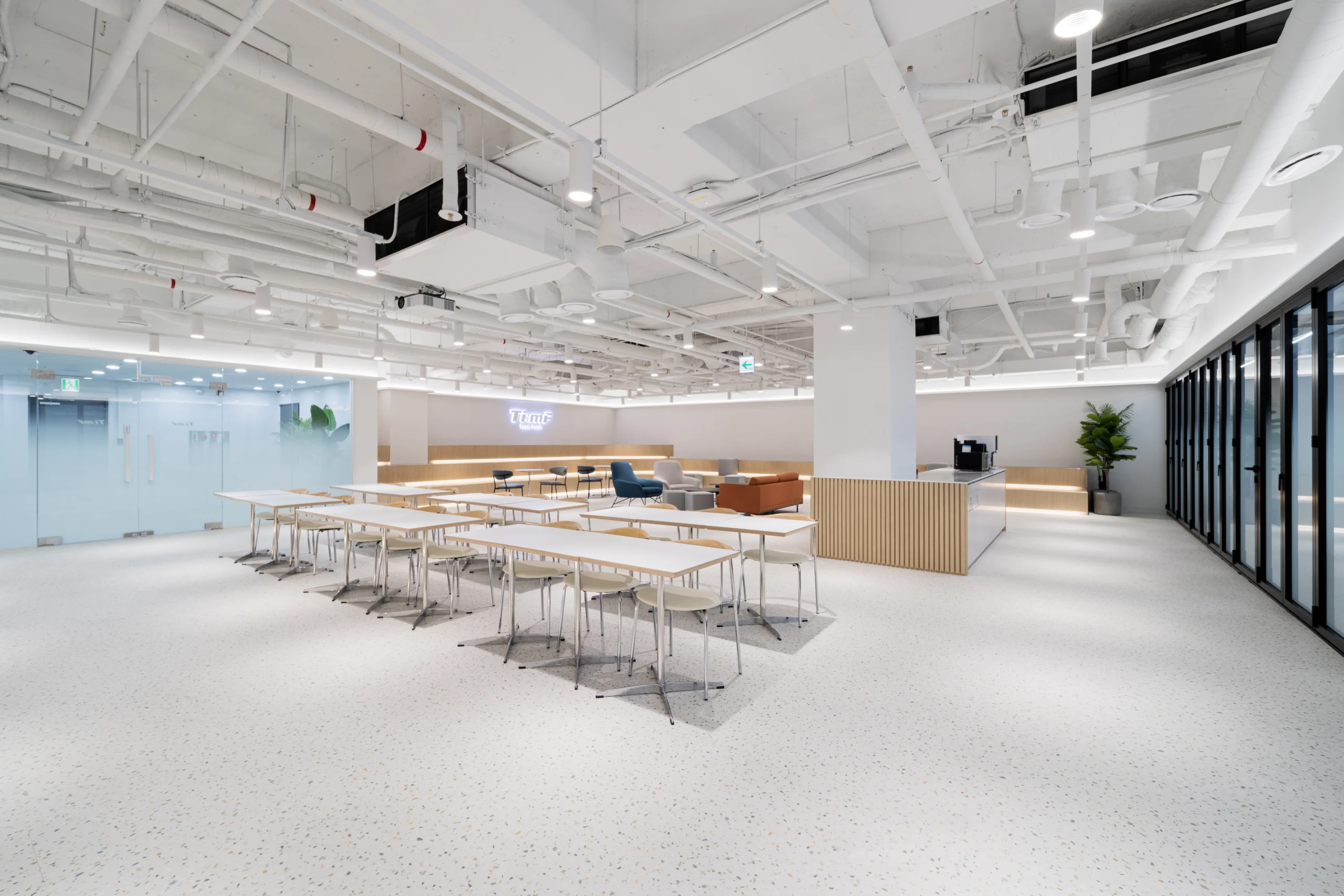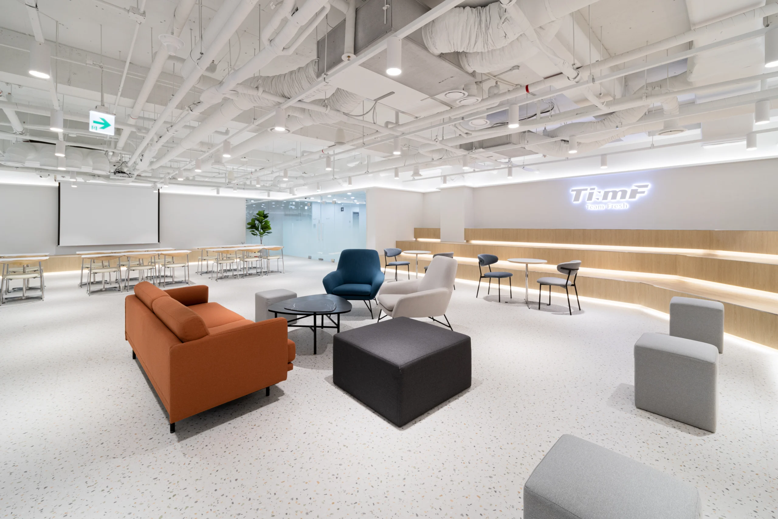이번 글래드큐브빌딩 사무실 인테리어는 팀프레시의 유연한 기업문화를 반영한 ‘복합형 라운지 오피스’를 목표로 기획되었습니다. 카페형 라운지, 업무 집중 공간, 미팅룸, 도서관형 북카페, 리프레시 공간(탁구장), 전사 이벤트룸까지 각 기능이 분리되면서도 자연스럽게 연결되도록 설계했습니다. 팀워크를 중시하는 팀프레시의 사내 문화가 공간 곳곳에 녹아들 수 있도록, 가구 구성과 동선, 조명 디자인에 특히 집중했습니다.